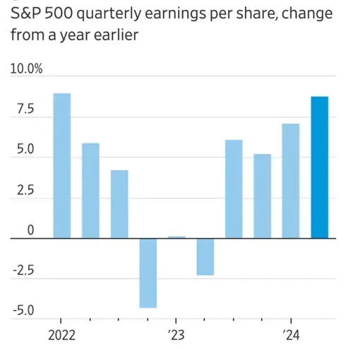 Even with a significant rise in earnings for the “Other 493,” the bar is set fairly high for this earnings season. The S&P 500 is currently projected to show 8.8% year-over-year growth in EPS for Q2 (chart below), a meaningful rise from previous quarters, and even if accurate, it may not be enough to support further growth.